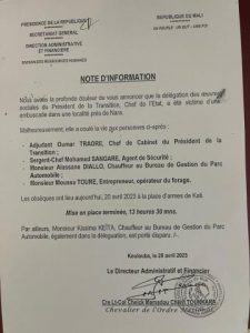 قالت الرئاسة المالية اليوم إن 4 من موظفيها من بينهم عمر تراوري مدير ديوان الرئيس الانتقالي عاصيمي غويتا قتلوا في هجوم قرب بلدة “نارا” على حدودها المشتركة مع موريتانيا.