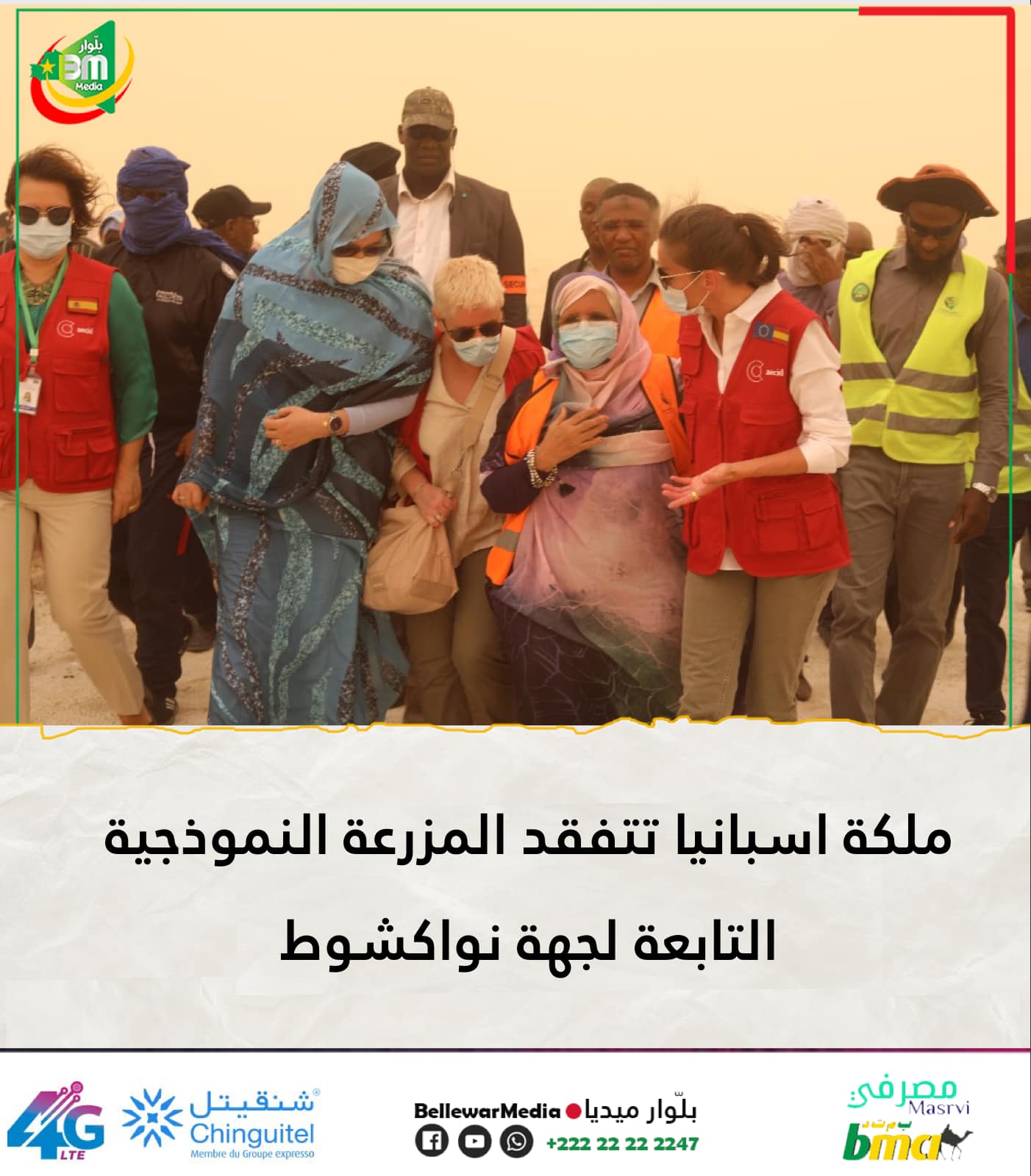 أدت ملكة اسبانيا السيدة دونيا ليتيسا صباح اليوم الخميس، زيارة للمزرعة النموذحية الواقعة عند الكلم 17 على طريق روصو التابعة لجهة نواكشوط والممولة من طرف التعاون الاسباني.