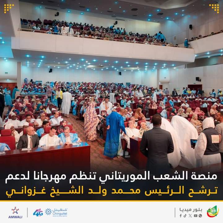 وكان الشعار الأبرز في هذه التظاهرة: “منصة الشعب الموريتاني مع ابن الشعب؛ فخامة الرئيس محمد ولد الشيخ الغزواني نحو مأمورية ثانية”.