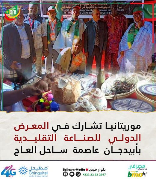 تشارك موريتانيا في المعرض الدولي للصناعة التقليدية، المقام حاليا في أبيدجان بساحل العاج، حيث بعث القطاع وفدا برئاسة مدير الصناعة التقليدية والحرف.