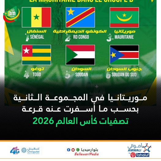 موريتانيا فى المجموعة الثانية بحسب ما أسفرت عنه قرعة تصفيات كأس العالم 2026: أس…
