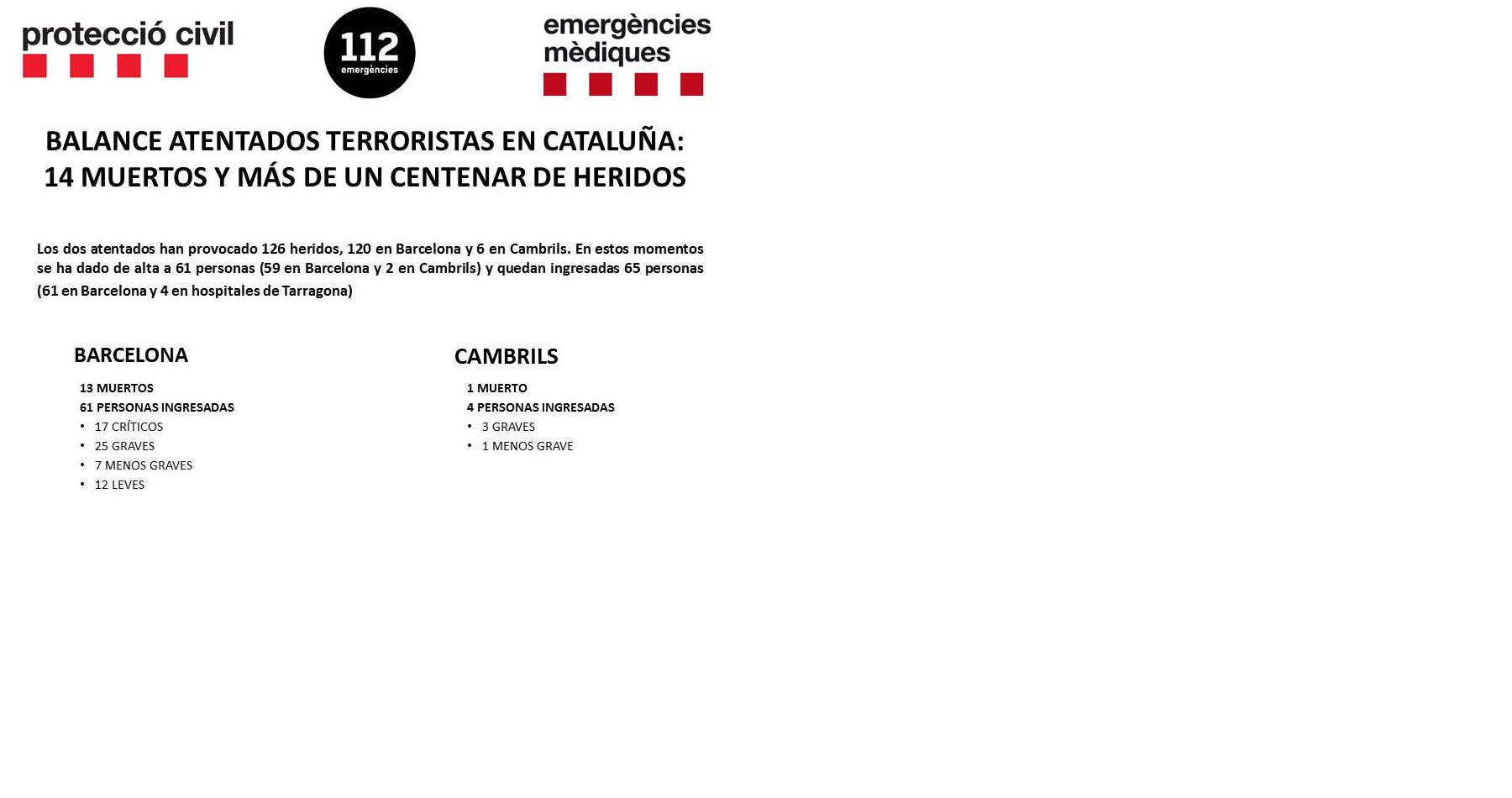 حسب EmergènciesCatalunya يوجد موريتانيين ضمن ضحايا عملية الدهس الإرهابية التي كان شارع لارامبلا السياحي في برشلونة مسرحا لها امس وذكر حساب للطوارئ كاتالونيا ان اللائحة تضم ضحايا من 34دولة مختلفة دون اعطاء تفاصيل دقيقة عن حالات الوفيات من اي جنسية .(الصورة الاولى)