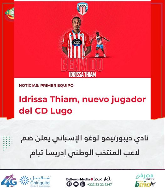 نادي ديبورتيفو لوغو الإسباني يعلن ضم لاعب المنتخب الوطني إدريسا تيام للموسمين .