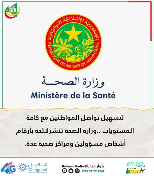 نشرت وزارة الصحة صباح اليوم الجمعة لائحة بأرقام أشخاص مسؤولين سامين في الوزارة وعدة مراكز صحية في انواكشوط .