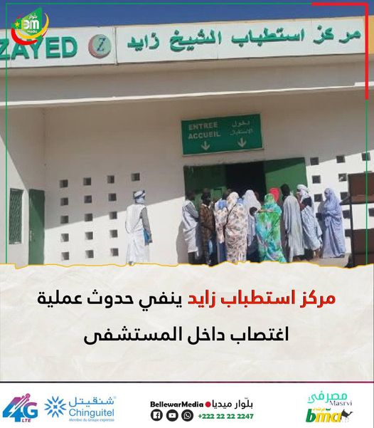 تفاجأنا في مركز استطباب الشيخ زايد بنشر أحد حسابات الفيسبوك عن حصول عملية اغتصاب بالمستشفى، وبعد الاتصال بمختلف الفرق التي كانت مداومة البارحة والذين نفوا علمهم بأي مسألة من هذا القبيل قدمت إدارة المستشفى شكاية من صاحب المنشور المذكور لدى الإدارة الجهوية للأمن بولاية انواكشوط الشمالية لتباشر التحقيق في الموضوع.