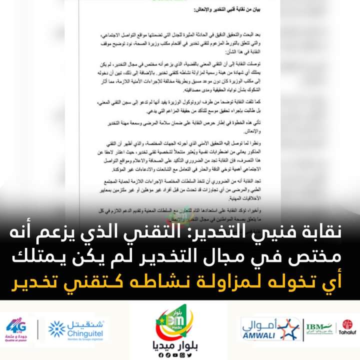وأخيرا، تؤكد النقابة على استعدادها التام للتعاون مع السلطات المعنية وتقديم الدعم اللازم في كل ما يتعلق بصحة المواطنين في مجال التخدير والإنعاش.