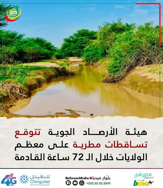 وتوقعت الهيئة أمطارا قوية إلى متوسطة، يومي الجمعة و السبت، على كل من الحوضين و لعصابة و جنوب تكانت و لبراكنة وكوركل وكيدي ماغه و واترارزة بما في ذلك نواكشوط.