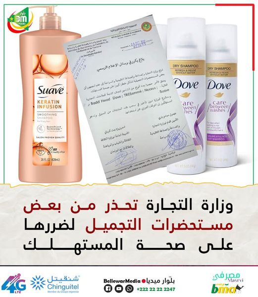 وأوضحت الوزارة في بلاغ صادر عنها أن الأمر يتعلق بعدة أنواع من الشامبو الجاف، التابعة لعلامات التجارية التالية:Nexxus, TRESemmé, Badd Head Doveو Suave.