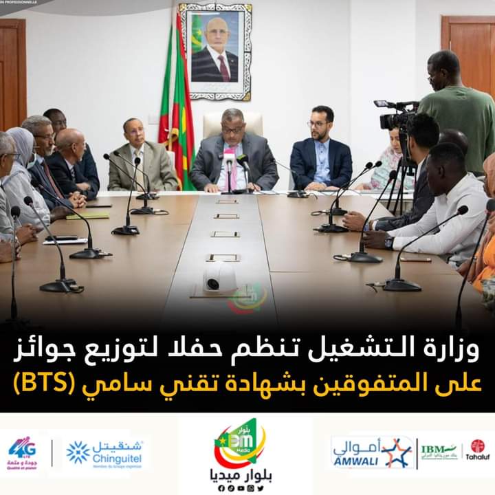 أشرف الأمين العام لوزارة التشغيل والتكوين المهني، محمد سالم ولد بوخريص، اليوم الثلاثاء، على حفل توزيع جوائز للمتفوقين بشهادة تقني سامي (BTS)، خريجي مؤسسات التعليم الفني والتكوين المهني تحت وصاية القطاع.