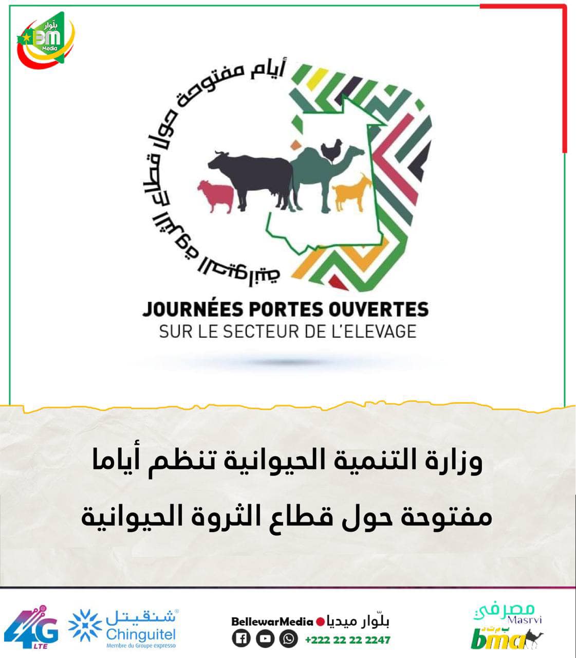 وزارة التنمية الحيوانية تنظم أياما مفتوحة حول قطاع الثروة الحيوانية في موريتانيا”، بتاريخ 29 – 30 مارس 2022، بقصر المؤتمرات في نواكشوط.