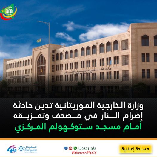وزارة الخارجية الموريتانية تدين حادثة إضرام النار في مصحف وتمزيقه أمام مسجد ستوكهولم المركزي: