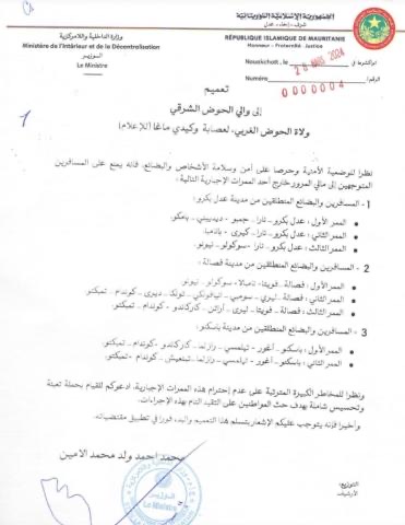 ودعا وزير الداخلية واللا مركزية محمد أحمد ولد محمد الأمين والي الحوض الشرقي إلى القيام بحملة تعبئة وتحسيس شاملة، بهدف حث المواطنين على التقيد التام بهذه الإجراءات.
