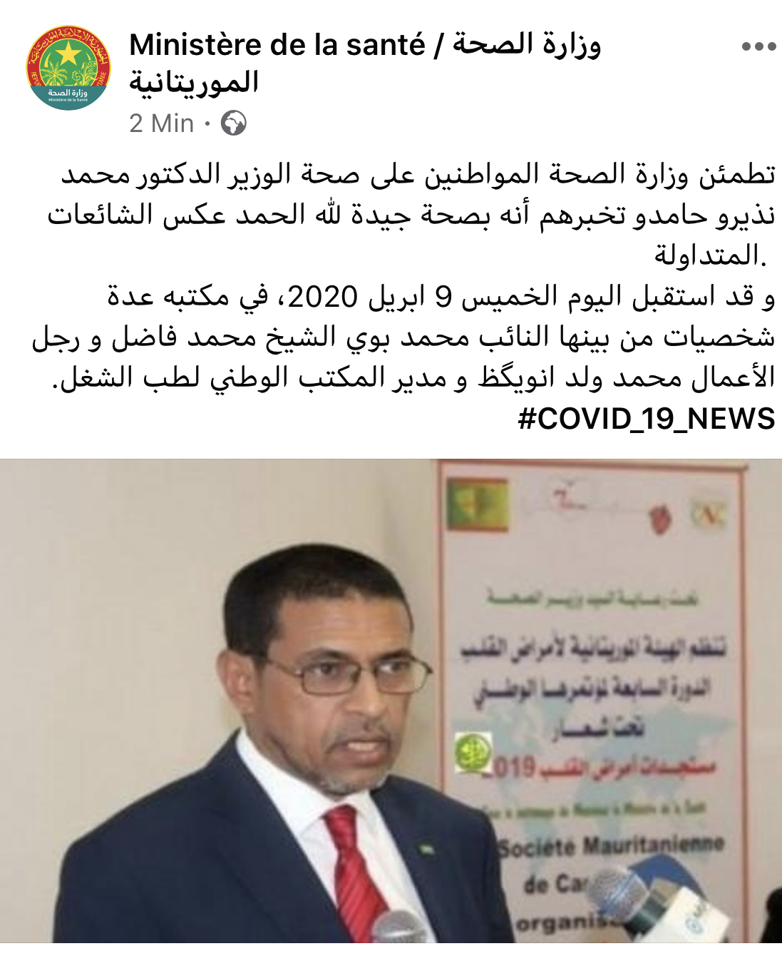 عام وزارة الصحة : الوزير نذيرو بصحة جيدة ولله الحمد ولا صحة للشائعات 9 أبريل، 2020 9 أبريل، 2020 شاركها فيسبوك X واتساب مشاركة عبر البريد