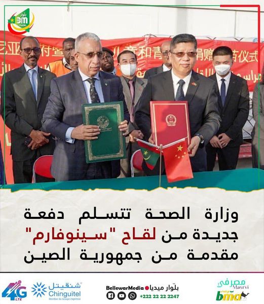 تسلمت وزارة الصحة، مساء اليوم، دفعة جديدة من لقاح “سينوفارم”، مكونة من مليون جرعة، هدية لموريتانيا من جمهورية الصين الشعبية.