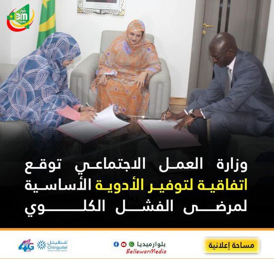 أشرفت وزيرة العمل الاجتماعي والطفولة والأسرة، صفية بنت انتهاه، اليوم الإثنين في انواكشوط على توقيع اتفاقية شراكة وتعاون مع مركزية