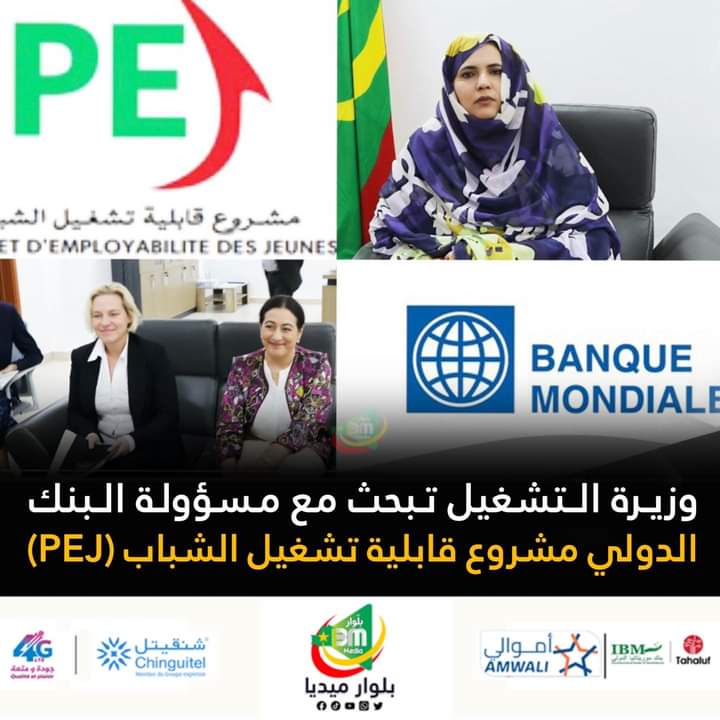 بحثت وزيرة التشغيل والتكوين المهني زينب أحمدناه، اليوم الثلاثاء، مع مسؤولة العمليات بالبنك الدولي في موريتانيا السيدة كريستينا باناسكو سانتوس مراجعة نصف المدة لمشروع قابلية تشغيل الشباب (PEJ).