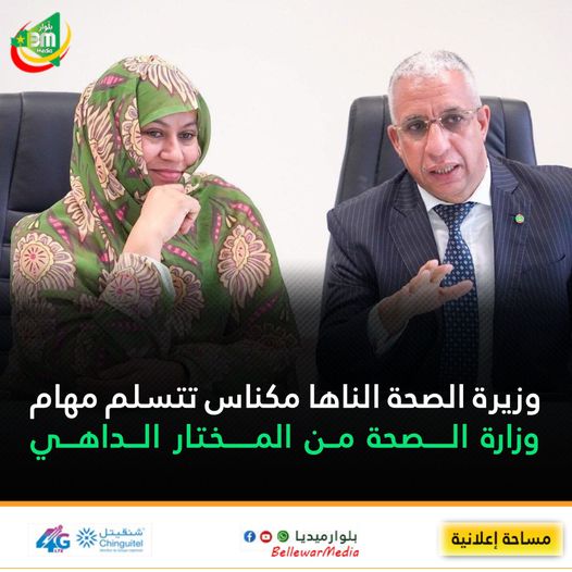 تسلمت وزيرة الصحة الناها حمدي مكناس مهام الوزارة من وزير الصحة السابق ووزير التهذيب الوطني وإصلاح النظام التعليمي الحالي المختار الداهي خلال
