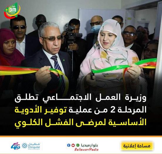 أشرفت وزيرة العمل الاجتماعي والطفولة والأسرة، صفية بنت انتهاه، رفقة وزير الصحة، المختار ولد داهي، اليوم الخميس بمركز الاستطباب الوطني في نواكشوط، على إطلاق المرحلة الثانية من عملية توفير الأدوية الأساسية لمرضى الفشل الكلوي.