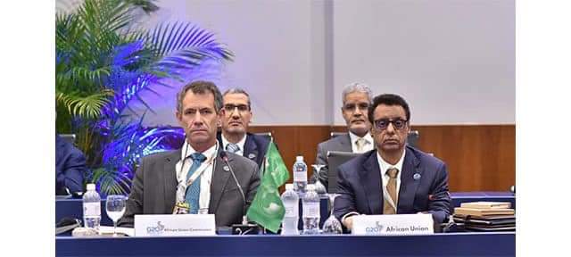 تجدر الاشارة الي أن بلادنا تشارك بصفتها الرئيس الدوري للاتحاد الافريقي وقد ضم الوفد فريق من منظمة الاتحاد الأفريقي وكذلك السيد سيد أحمد ولد ابوه، المستشار برئاسة الجمهورية، موفد فخامة رئيس الجمهورية، الرئيس الدوري للاتحاد الافريقي الي مجموعة العشرين.