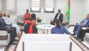استقبل وزير الشؤون الاقتصادية وترقية القطاعات الإنتاجية السيد أوسمان مامودو كان،صباح اليوم الثلاثاء بمكتبه في الوزارة، بعثة من مكتب الأمم المتحدة لغرب إفريقيا ومنطقة الساحل برئاسة الممثلة الخاصة المساعدة للأمين العام للأمم المتحدة رئيسة البعثة بالنيابة السيدة جيوفاني بيها.