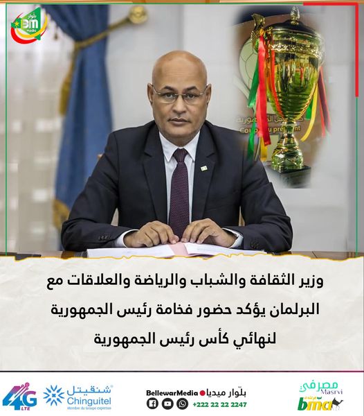 وزير الثقافة والشباب والرياضة والعلاقات مع البرلمان يؤكد حضور فخامة رئيس الجمهورية لنهائي كأس رئيس الجمهورية ويسرد أهم الإنجازات في قطاع الرياضة منذ توليه رئاسة الجمهورية، ومن أهم تلك الإنجازات: