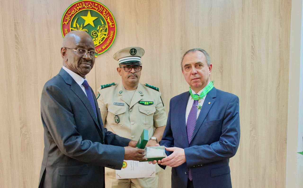 ويأتي هذا التكريم بمناسبة انتهاء مهمة السفير الروسي في البلاد، تقديرًا لجهوده خلال فترة عمله، وما أسهم به في تعزيز وتطوير علاقات التعاون بين موريتانيا وروسيا الاتحادية.