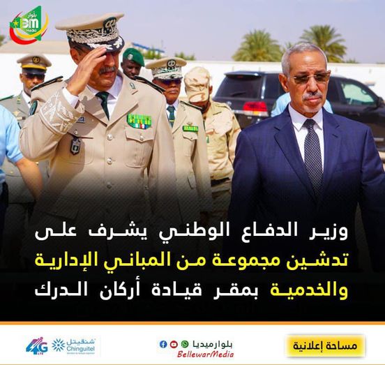 أركان الدرك الوطني في انواكشوط على تدشين مجموعة من المباني الإدارية والخدمية.وتتكون هذه المباني المجهزة بأحدث الوسائل من مرآب للسيارات يضم عنابر لتوقيف وحفظ السيارات ومستلزماتها ومباني إدارية بالإضافة إلى إدارة لنظم المعلومات والآثار الرقمية مكونة من طابقين موزعين بين مكاتب إدارية وقاعات لاختصاصات مختلفة مزودة بالوسائل الضرورية لعملها ونادي للضباط موزع على جناحين لكبار الشخصيات والضباط ومطبخ ومقهى.