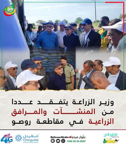 وشملت الزيارة عملية فك العزلة عن المزارع في قرية طيبة على مشارف مدينة روصو وذلك قبل أن يزور المكتب الجهوي للشؤون العقارية والزراعة المروية والشركة الوطنية للتنمية الريفية “صونادير” والمندوبية الجهوية للزراعة والشركة الوطنية للاستصلاح الزراعي والاشغال “اسنات” ومزرعة امبورية.