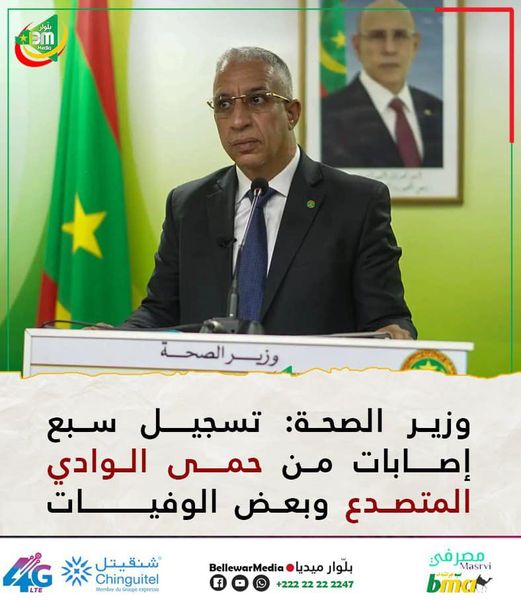 أكد وزير الصحة، المختار ولد داهي، تسجيل سبع إصابات من حمى الوادي المتصدع وبعض الوفيات وحالة واحدة من حمى القرم في أمبود، تمت متابعة صاحبتها حتى تجاوزات مرحلة الخطر.