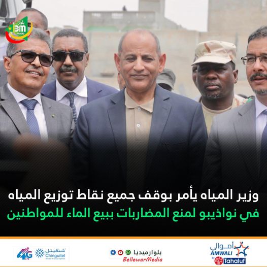 أمر وزير المياه والصرف الصحي إسماعيل عبد الفتاح اليوم الخميس بوقف جميع نقاط توزيع المياه في نواذيبو لمنع المضاربات