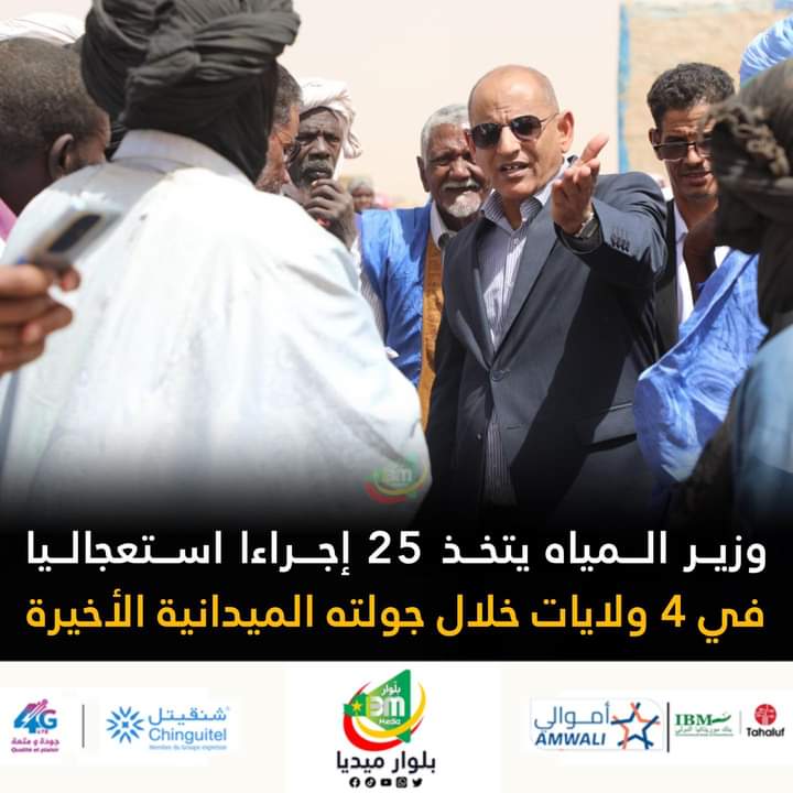كشفت وزارة المياه والصرف الصحي عن اتخاذ الوزير إسماعيل عبد الفتاح خلال جولته الأخيرة التي شملت أربع ولايات (الحوضين؛ لعصابة، لبراكنة) 25 إجراءا استعجاليا، قبل موسم الصيف ستمكن من تحسين حصول المواطنين على الماء الصالح للشرب في عدد من النقاط.