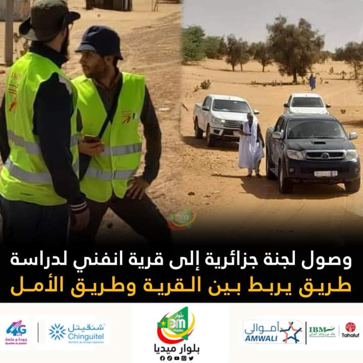 قامت لجنة فنية من المهندسين الجزائريين بالتعاون والتنسيق مع وزارة التجهيز والنقل الموريتانية بزيارة قرية انفني الأربعاء المنصرم بغية دراسة الطريق الرابط بين قرية (انفني) حيث ضريح ناشر السند التيجاني عبر العالم الشريف العلوي الشيخ محمد الحافظ (الطلبه)؛ وطريق الأمل ولتشرف على وضع اللمسات الأولية لهذا الطريق.