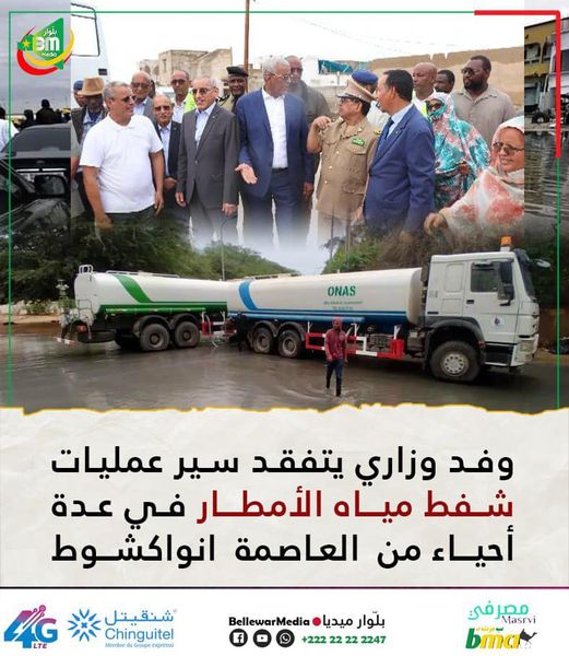 وقد شملت هذه الزيارة عدة نقاط لشفط مياه الأمطار التي تجمعت في المنحدرات والملتقيات الطرقية الرئيسية في ولايتي نواكشوط الشمالية والغربية.
