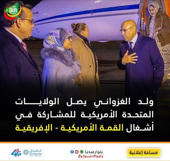 وصل رئيس الجمهورية، محمد ولد الشيخ الغزواني، فجر اليوم الإثنين إلى واشنطن (الولايات المتحدة الأمريكية) للمشاركة في أشغال القمة الأمريكية – الإفريقية.