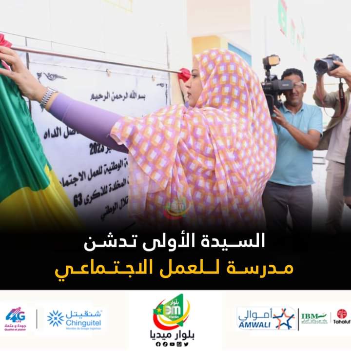 دشنت السيدة الأولى الدكتورة مريم بنت فاضل الداه، اليوم الجمعه بالعاصمة نواكشوط؛ مباني المدرسة الوطنية للعمل الاجتماعي.