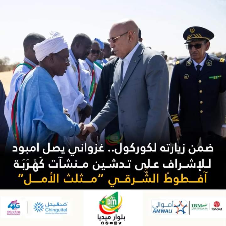 ضمن زيارته لكوركول: الرئيس غزواني يصل امبود لتدشين منشآتِ كَهْرَبَةِ منطقةِ آفطوطْ الشَّرقي “مثلث الأمل”.