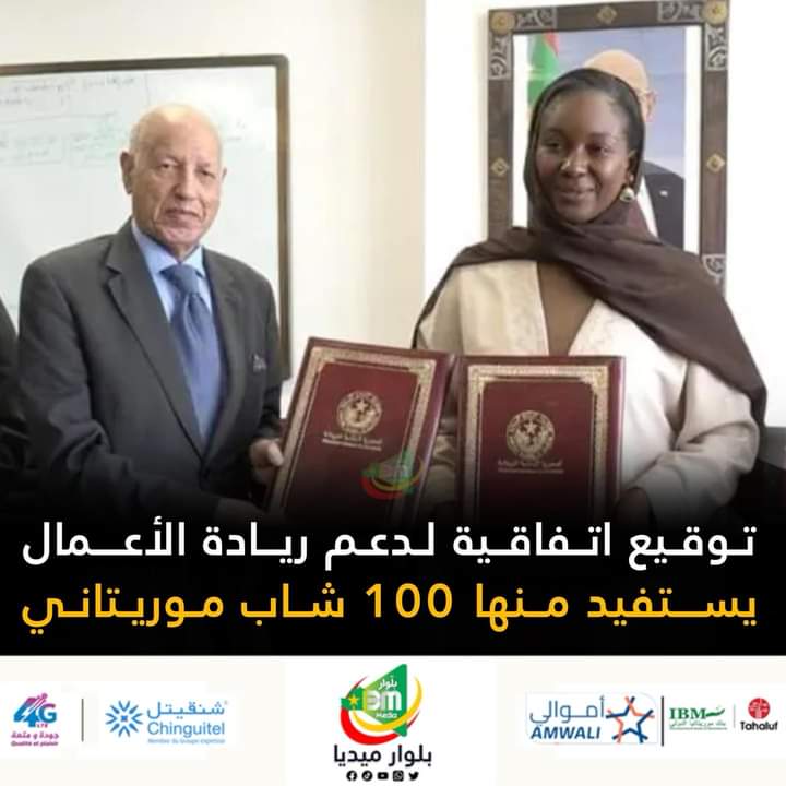 وقع الأمين العام للاتحاد الوطني لأرباب العمل الموريتانيين التقي ولد سيدي مع المديرة العامة لوكالة ترقية الاستثمار آيساتا لام على ابرتوكل اتفاقية من أجل تعزيز ودعم ريادة الأعمال الشبابية وخلق فرص العمل في موريتانيا.