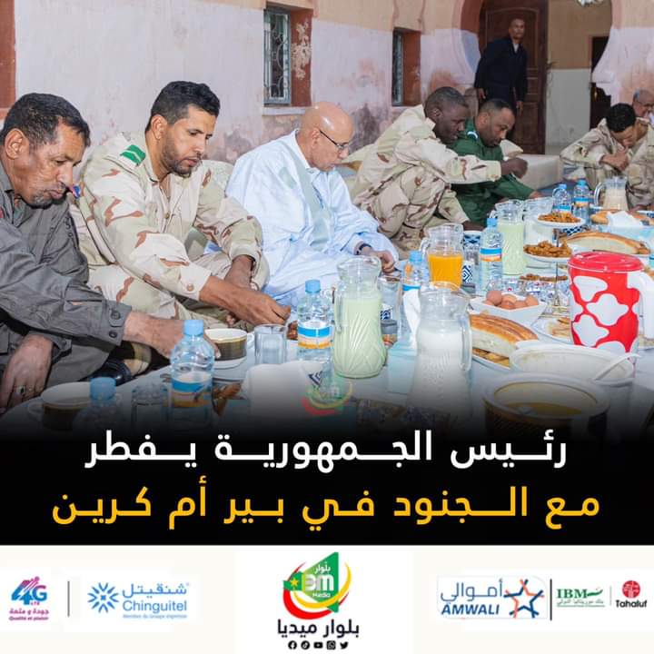 أفطر الرئيس محمد ولد الشيخ الغزواني، مساء اليوم، مع مجموعة من الجنود وضباط الصف والضباط المرابطين في مدينة بئر أم كرين، بولاية تيرس الزمور.