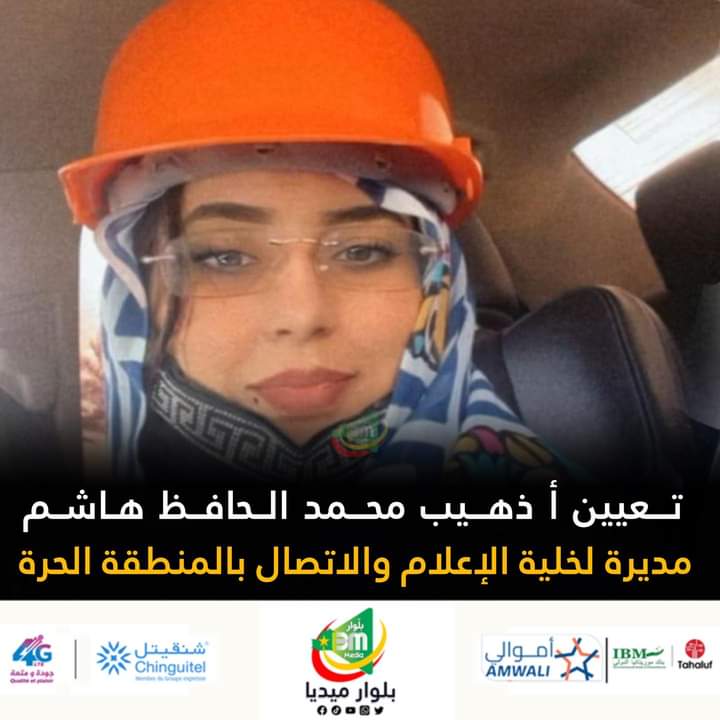 أصدر رئيس سلطة منطقة نواذيبو الحرة السيد با مامادو عبد الله مذكرة عمل تقضي بتعيين اذهيب محمد الحافظ هاشم مديرة لخلية الإعلام والاتصال بسلطة منطقة نواذيبو الحرة.