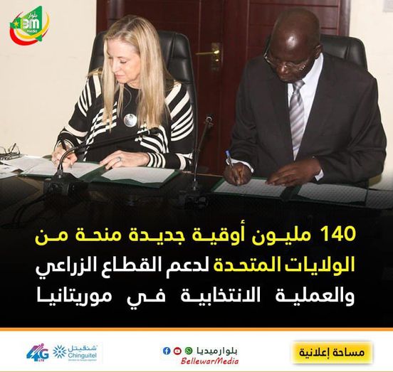 140 مليون أوقية جديدة منحة من الولايات المتحدة لدعم القطاع الزراعي والعملية الانتخابية المقبلة