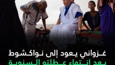 [ad_1] غزواني يعود إلى نواكشوط بعد انتهاء عطلته السنوية: أفادت مصادر إعلامية أن رئيس الجمهورية محمد ولد الغزواني أنهى اليوم…