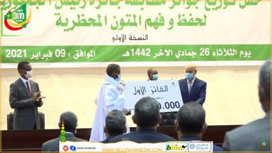 حفل توزيع جوائز مسابقة جائزة رئيس الجمهورية لحفظ المتون بإشراف الرئيس محمد ولد الشيخ الغزواني.