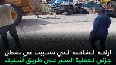 إزاحة الشاحنة التي تسببت في تعطل جزئي لعملية السير على طريق أشتيف: أزاحت الفرق …