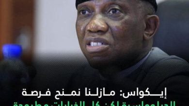 إيكواس: مازلنا نمنح فرصة الدبلوماسية لكن كل الخيارات مطروحة: قال مفوض السلام وا…
