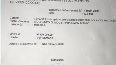 تبرع رجل الأعمال و السياسي الموريتاني البارز المصطفى ولد الشافعي لصندوق الدعم الاجتماعي و محاربة وباء الكورونا “مساهماتي” بمبلغ خمسين…
