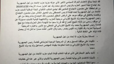 بيان اللجنة الوطنية للشباب بحزب الاتحاد من أجل الجمهورية