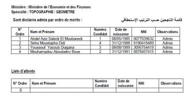 الأخبار (نواكشوط) – أعلنت اللجنة الوطنية للمسابقات اليوم الخميس عن النتائج النهائية لاكتتاب 433 مهندسا لعدة قطاعات حكومية. وجاء إعلان…