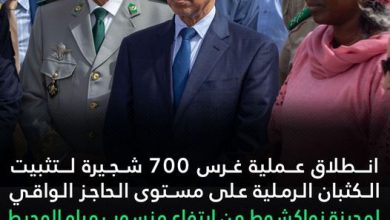[ad_1] انطلاق عملية غرس 700 شجيرة لتثبيت الكثبان الرملية على مستوى الحاجز الواقي لمدينة نواكشوط من ارتفاع منسوب مياه المحيط:…