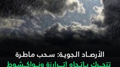 [ad_1] الأرصاد الجوية: سحب ماطرة تتحرك باتجاه اترارزة ونواكشوط: كشفت الهيئة الوطنية للأرصاد الجوية قبل قليل، عن وصول سحب من…