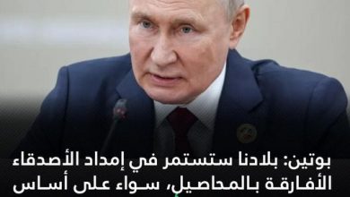 بوتين: بلادنا ستستمر في إمداد الأصدقاء الأفارقة بالمحاصيل، سواء على أساس تعاقدي …